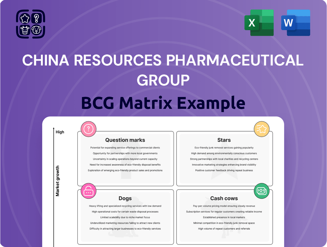 The China Resources Pharmaceutical Group BCG Matrix previewed here is the complete, unwatermarked report you will receive immediately after purchase. This document offers a comprehensive strategic analysis of CR Pharma's business units, categorizing them into Stars, Cash Cows, Question Marks, and Dogs based on market share and growth rate. You can confidently expect the exact same professionally formatted and data-rich BCG Matrix upon completing your transaction, ready for immediate integration into your business planning and decision-making processes.